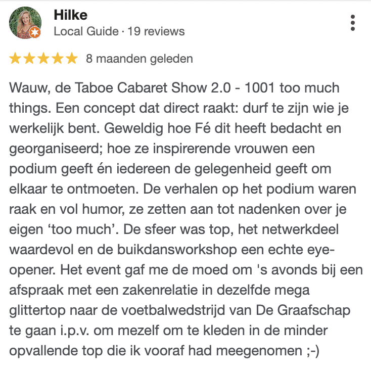 Het meest hilarische not your average event van ondernemersland waar jij naar huis gaat met buikspieren van het lachen, maar ook een transformatie in jezelf.